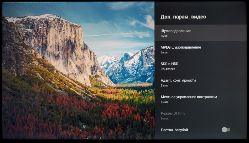 Наполнение контекстного меню может отличается в зависимости от источника изображения, воспроизводимого контента, его формата и доступных HDR-метаданных. В некоторых случаях часть настроек, ответственных за цветопередачу и качество изображения, может быть недоступна для пользователя. Также включение некоторых функций приводит к ограничению работы других — они становятся недоступны (заблокированы). Впрочем, в случае с Android TV таких ограничений всё же меньше, чем на других платформах — это факт.
