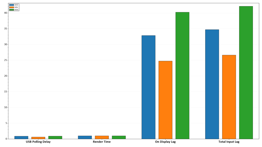 Также мы определяли полную задержку вывода от переключения страниц видеобуфера до начала вывода изображения на экран. В итоге при подключении по HDMI задержка вывода изображения в случае сигнала 3840×2160 и 60 Гц составила порядка 33 мс при активированном «игровом режиме». Его отключение привело к снижению средней задержки до 32 мс, а поэтому можно смело сделать вывод, что режим ни на что не влияет, а разница в значениях является погрешностью.