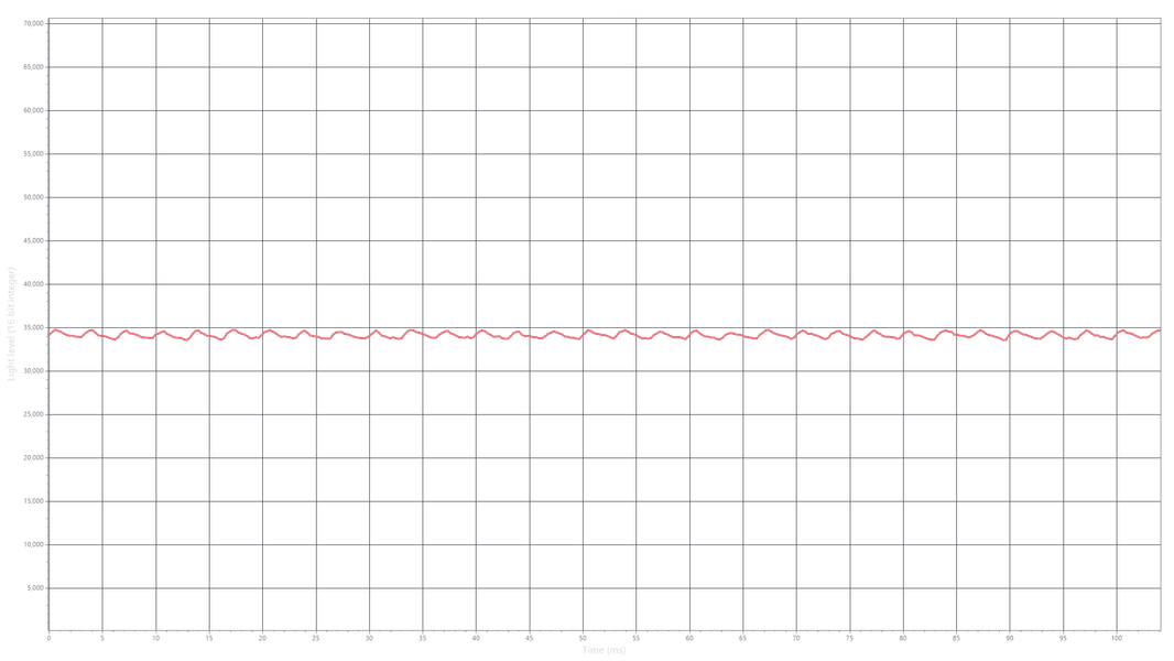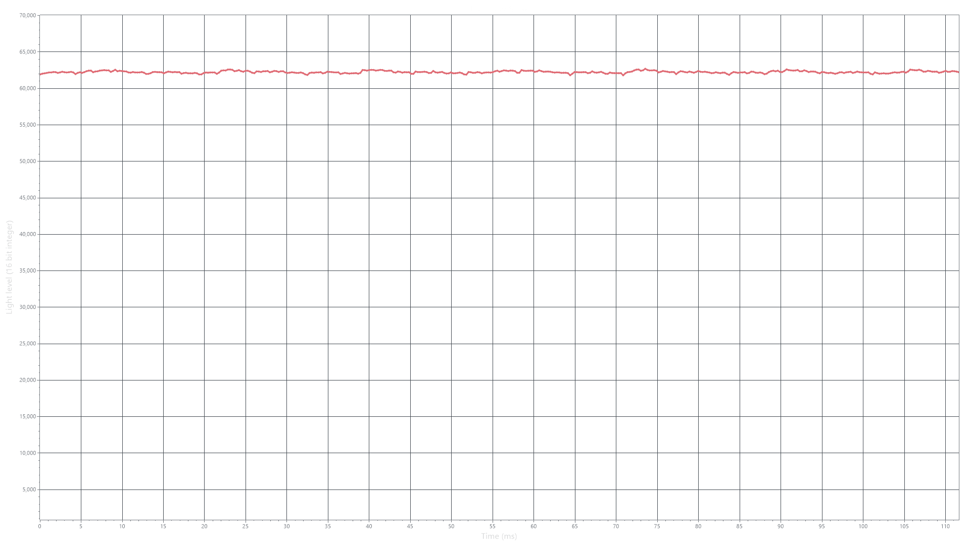 На любом уровне яркости значимая модуляция подсветки отсутствует, поэтому нет и никакого видимого мерцания экрана (ШИМ-модуляции в привычном понимании большинства потребителей). По данным же прибора Radex Lupin пульсации не превышают 0,5%-1,6% в зависимости от уровня выставленной яркости подсветки телевизора — это отличный результат для устройства из рассматриваемого ценового сегмента и современных моделей жидкокристаллических ТВ в целом.