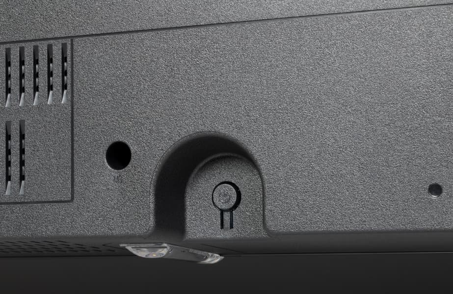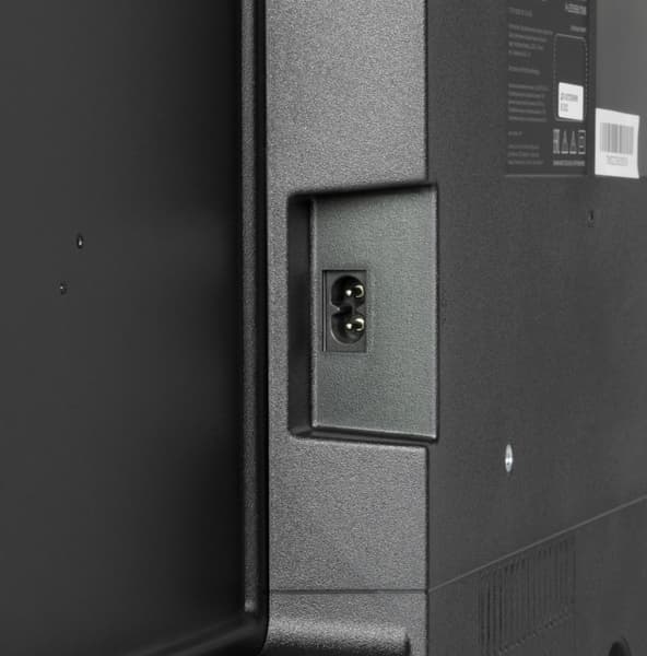 Сзади телевизор выглядит аккуратно. Задняя панель в верхней части изготовлена из тонкого листа стали и имеет стойкое черное матовое покрытие. Сверху и с боков панель заходит на торцы и образует окантовку экрана. Выступающий назад кожух в нижней части с заходом на нижний торец изготовлен из черного пластика с матовой, слегка шершавой поверхностью. Основные интерфейсные разъемы размещены в одной нише.