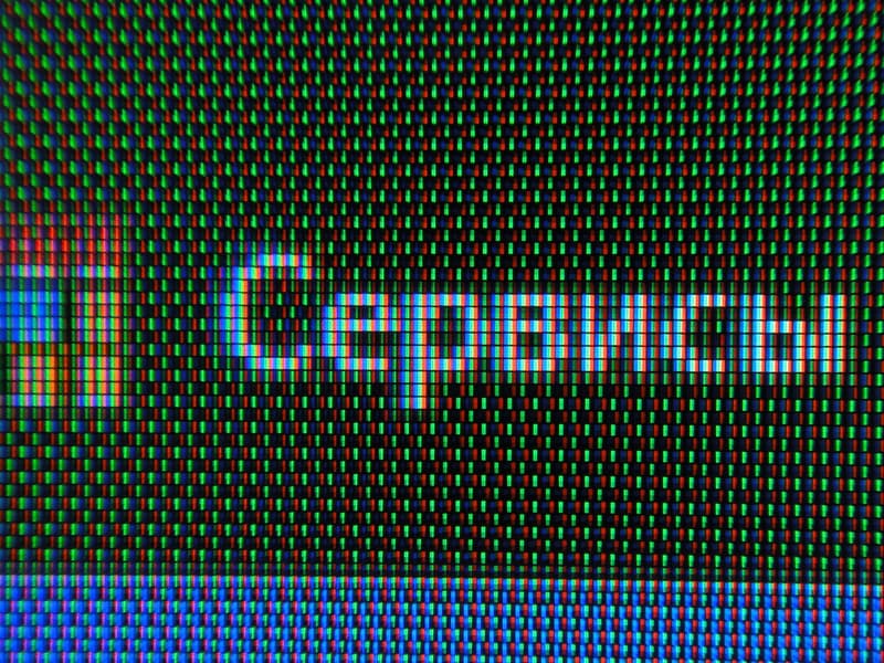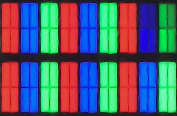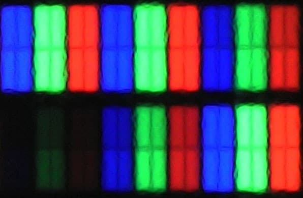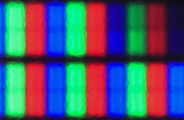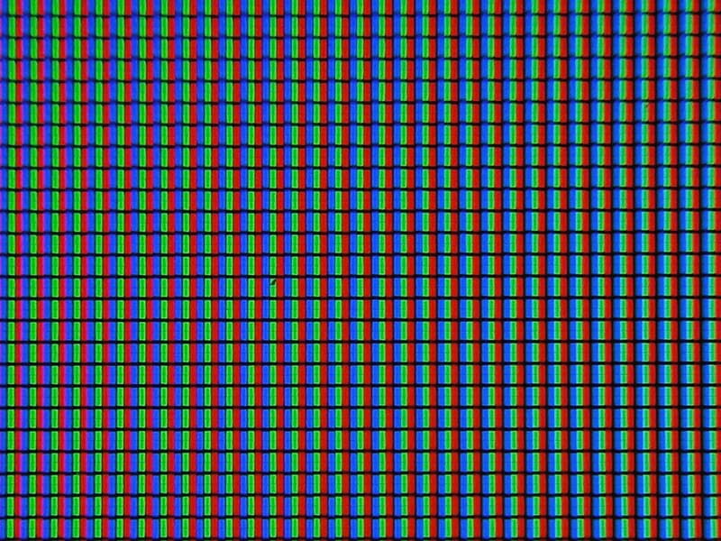 По микрофотографиям матрицы видна характерная для некоторых подтипов VA-матрицы структура субпикселей.