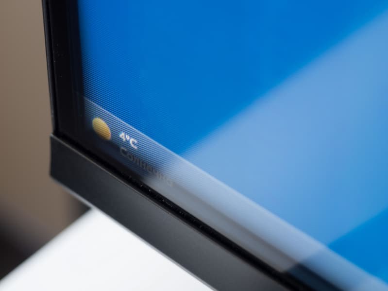 Будучи доступным решением используемая матрица в телевизоре обходится без ламинации. Сама панель слегка утоплена в пространство корпуса, а изображение с экрана как будто витает в воздухе — отмечаем заметную воздушную прослойку между «пиксельным слоем» и рабочей поверхностью экрана.