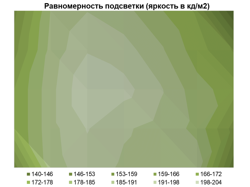 - Достойная равномерность подсветки по уровню яркости на светлом поле и отличные результаты равномерности подсветки на черном