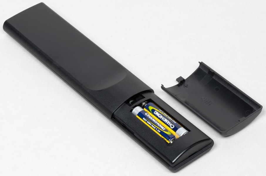 Пульт гибридный, он может работать как по ИК, так и по Bluetooth (для этого требуется единократно зажать определенное сочетание клавиш на пульте на протяжении 8-10 секунд). По ИК пульт работает до сопряжения с телевизором или когда телевизор находится в неглубоком или глубоком сне. Во всех остальных случаях ИК-передатчик не работает, и команды передаются по Bluetooth. В передней части пульта рядом с индикатором есть отверстие микрофона.