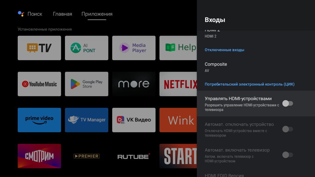 Есть поддержка управления по HDMI — функция HDMI CEC.