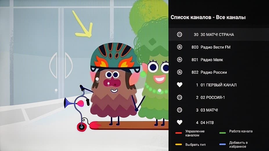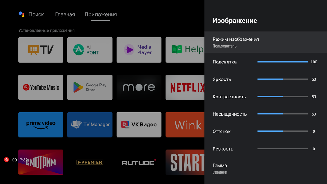 Также меню с настройками изображения и звука доступно в любой программе. Меню с настройками занимает большую часть экрана, что в ряде случаев затрудняет оценку вносимых в изображение изменений.