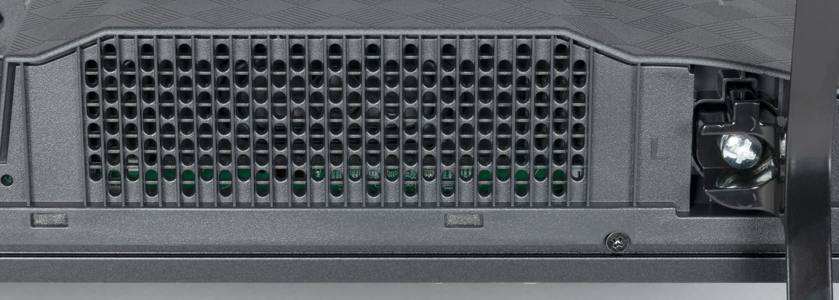 На пластиковом кожухе сверху, сзади и снизу есть вентиляционные решетки.