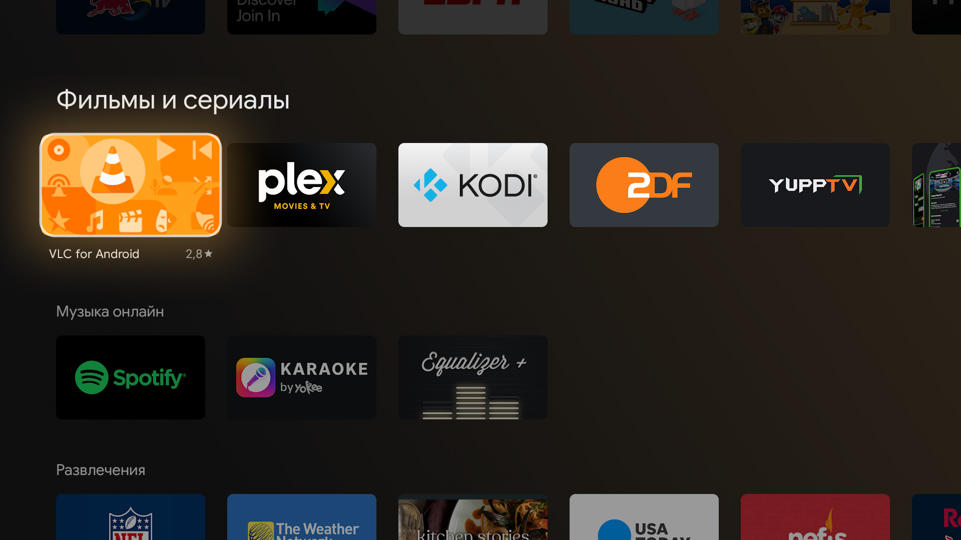 Формально для Android TV выбор приложений в магазине Google Play очень ограничен.