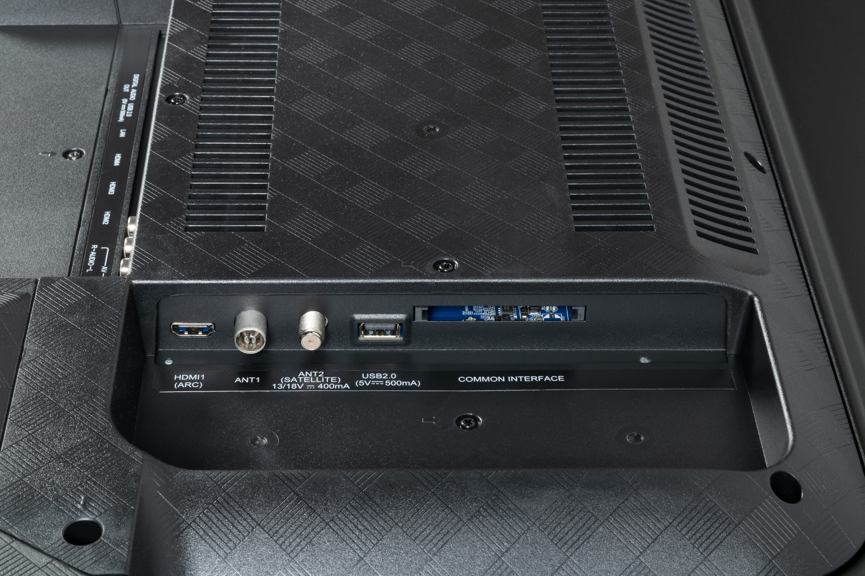 Таблица с характеристиками в начале статьи дает представление о коммуникационных возможностях телевизора. Все разъемы полноразмерные и размещены более-менее свободно.