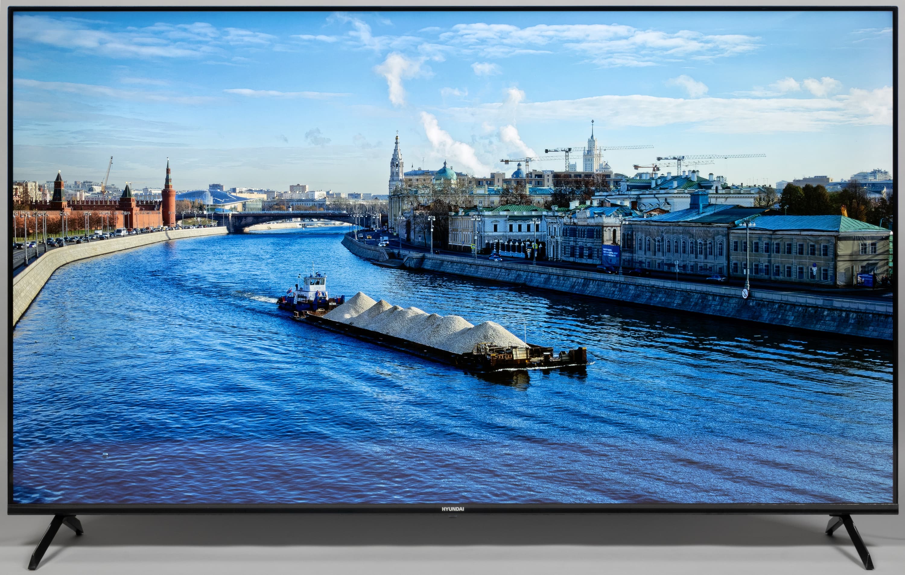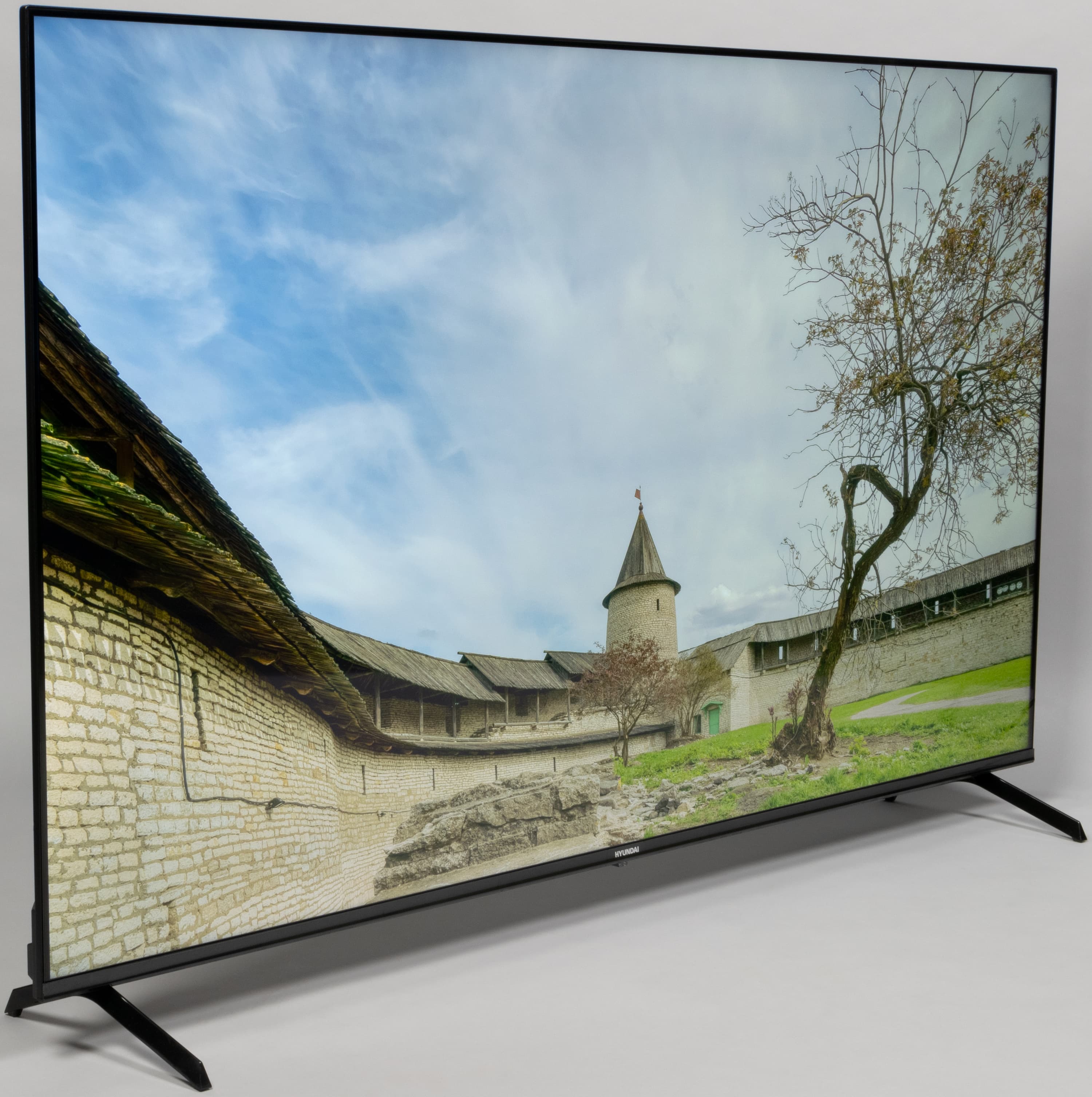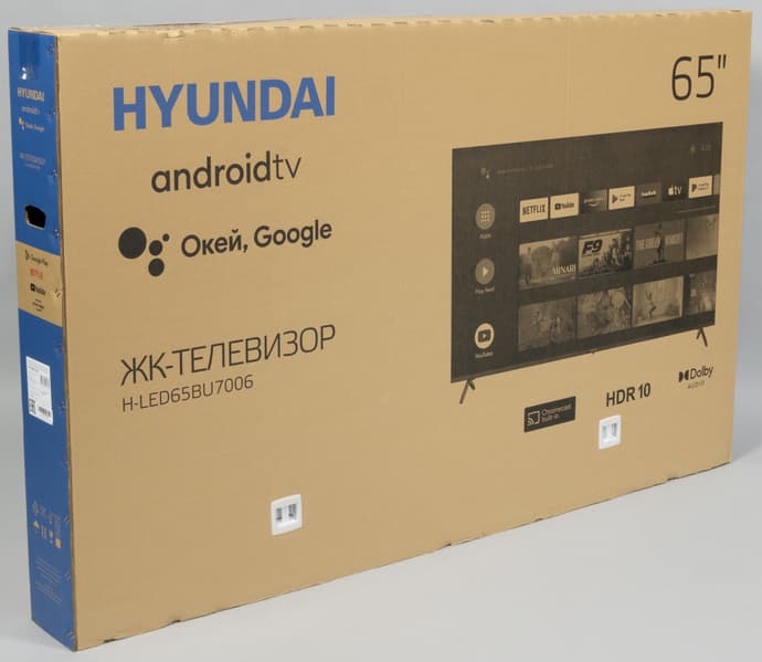 Телевизор Hyundai H-LED65BU7006 имеет строгий аккуратный дизайн с визуально безрамочным экраном, не отвлекающий зрителя от происходящего на экране. Работает ТВ под управлением системы Android TV, поэтому пользователь может установить практически любое стороннее ПО, в наибольшей степени отвечающее его потребностям и личным предпочтениям. Телевизор можно рекомендовать для просмотра телевизионных передач, кино и сериалов, а также для не очень динамичных игр. Отдельно отметим возможность использования этого ТВ в качестве огромного монитора при работе за ПК, так как снижения яркостной и цветовой четкости, а также видимого мерцания нет, но нужно учитывать довольно высокую минимальную яркость.