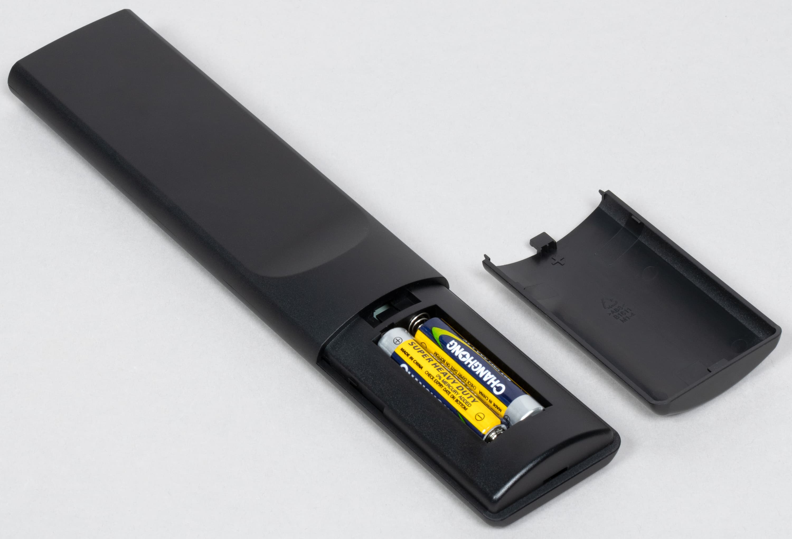 Пульт полноразмерный (211×44×19 мм), но относительно легкий (90 г с комплектными элементами питания).