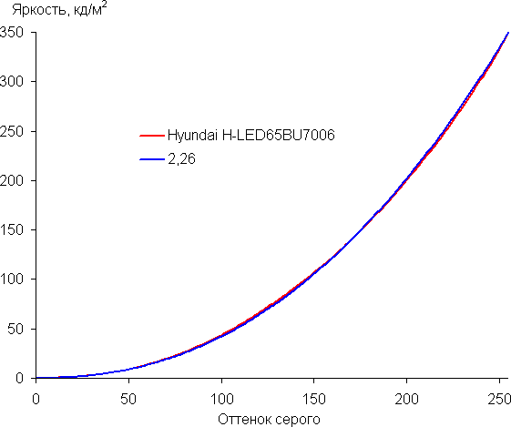 Аппроксимация полученной гамма-кривой дала показатель 2,26, что немного выше стандартного значения 2,2. При этом реальная гамма-кривая мало отклоняется от аппроксимирующей степенной функции:
