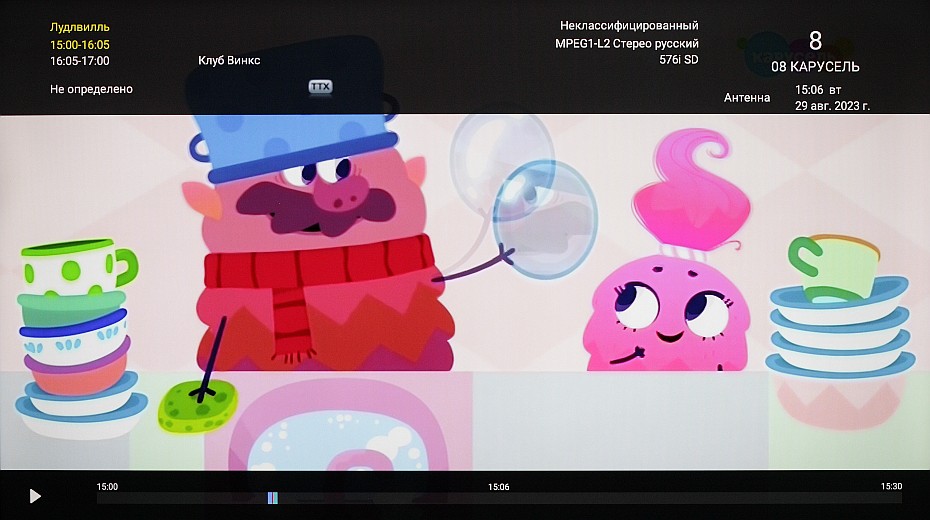 Поддерживается Teletext и вывод субтитров в частности.