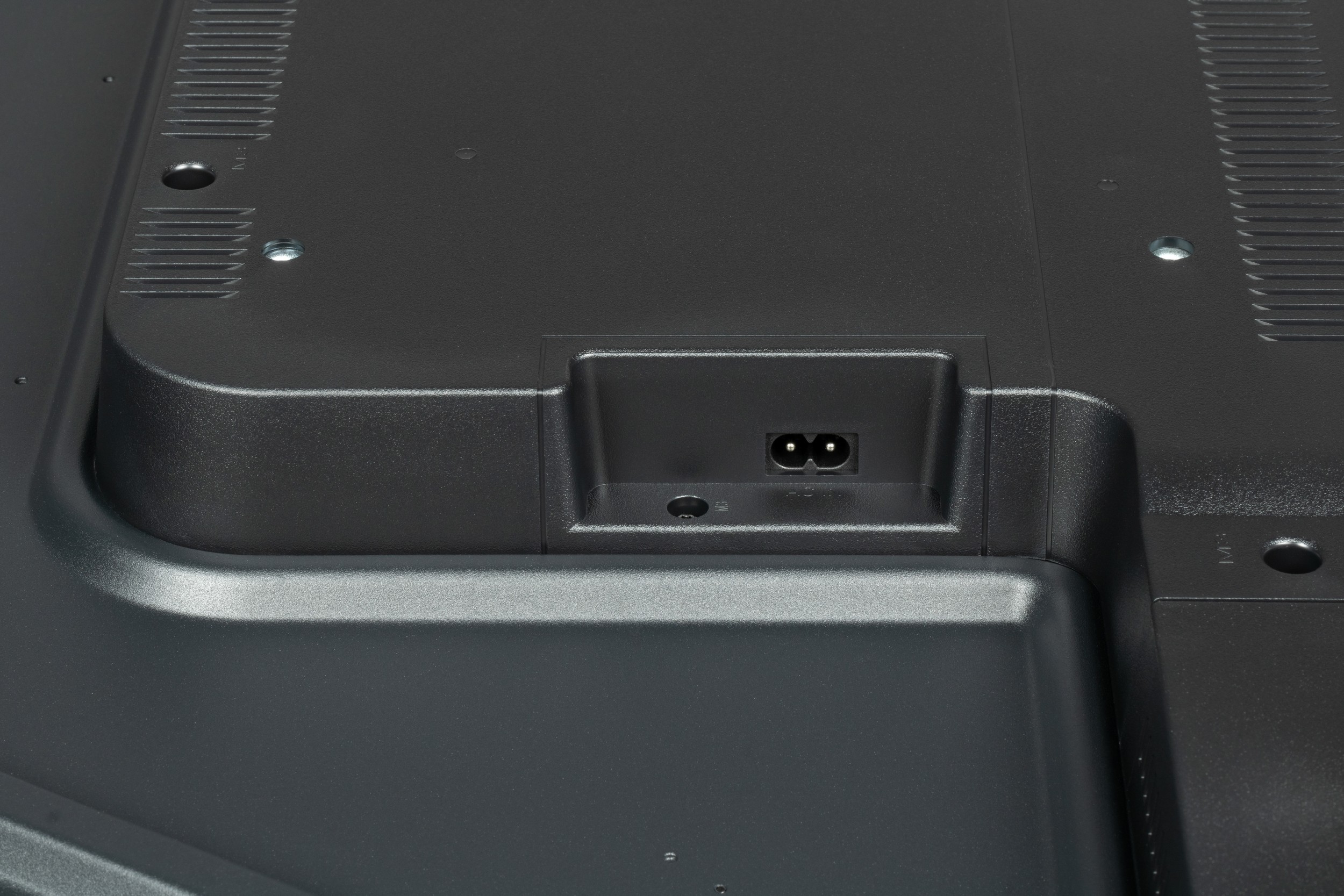 Сзади телевизор выглядит аккуратно. Большая часть поверхности задней панели изготовлена из тонкого листа стали и имеет стойкое черное матовое покрытие. Сама выштамповка отличается по рисунку от предшественника. Сверху и с боков панель заходит на торцы и образует окантовку экрана. Выступающий назад кожух в нижней части с заходом на нижний торец изготовлен из черного пластика с матовой, слегка шершавой поверхностью. Основные интерфейсные разъемы размещены в двух разнонаправленных нишах.
