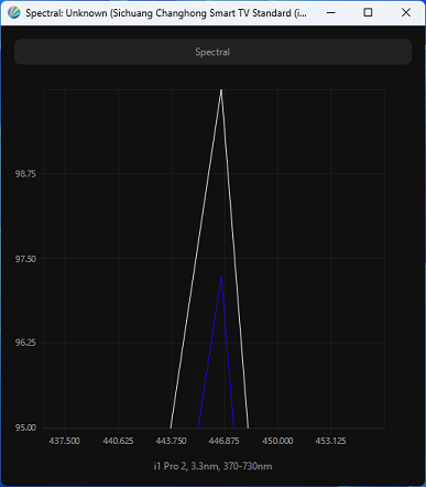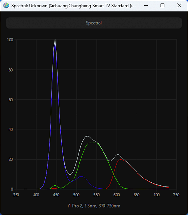 Виден классический пик синего, приходящийся на 447-448 нм, что неспособно обеспечить экран различными современными сертификатами безопасности. Перекрестное подмешивание компонент незначительное. Используется самая стандартная/классическая подсветка W-LED, способная продемонстрировать цветовой охват на уровне sRGB.