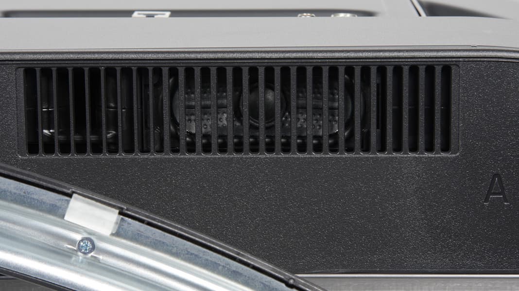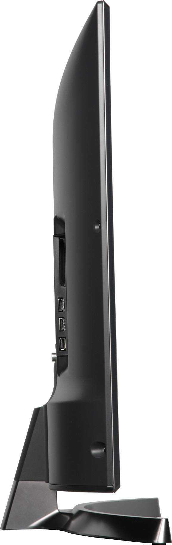 Кожух сзади изготовлен из тонкого листа стали и имеет черное матовое покрытие. Широкий нижний торец — из черного пластика с матовой поверхностью. Тонким телевизор не назовешь при всем желании.
