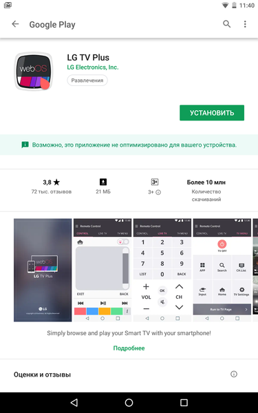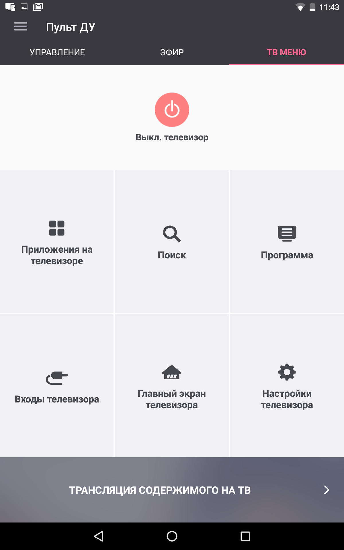 Кроме функций управления это приложение позволяет получить доступ к мультимедийному контенту, находящемуся на мобильном устройстве. К сожалению, несмотря на включение соответствующих опций в настройках ТВ, из приложения нельзя включить телевизор, находящийся в режиме ожидания.