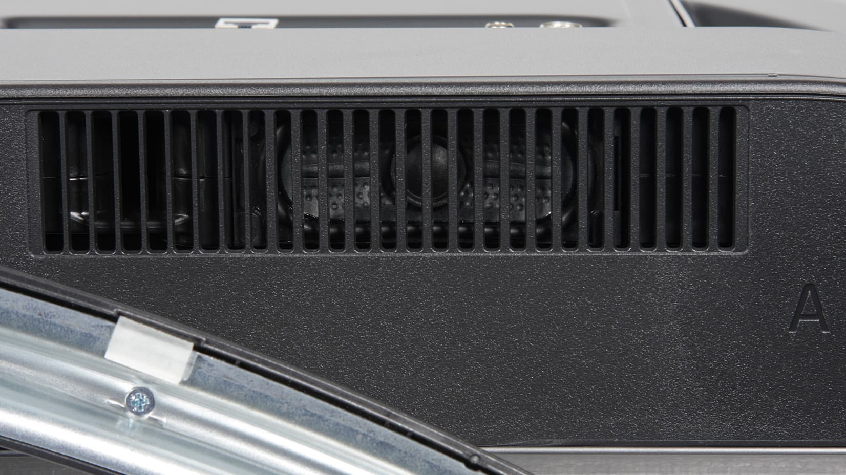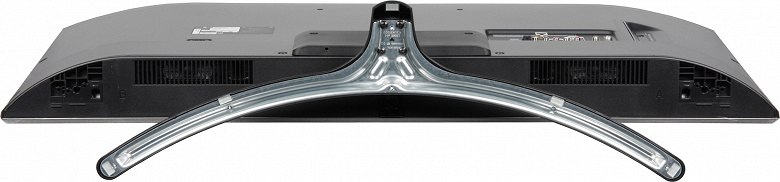 Основание отштамповано из толстой стали и прикрыто сверху пластиковым кожухом с серебристым покрытием. Вторая деталь подставки изготовлена из прочного черного пластика без покрытия. Опирается основание на пять противоскользящих накладок из упругого пластика. Жесткость конструкции достаточно высокая, телевизор стоит устойчиво с небольшим наклоном назад.