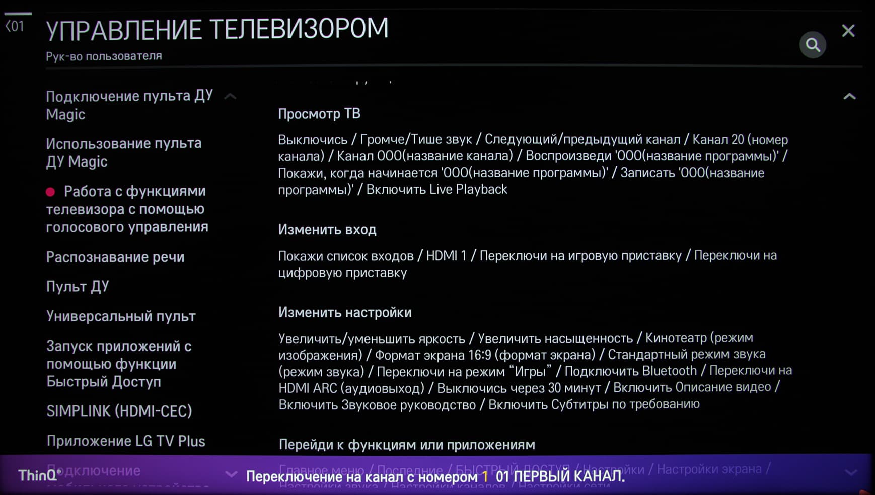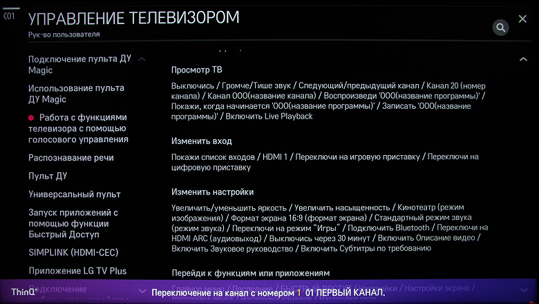 О каких-то воспринимаемых телевизором командах можно догадаться, что-то можно подсмотреть во встроенной справке.