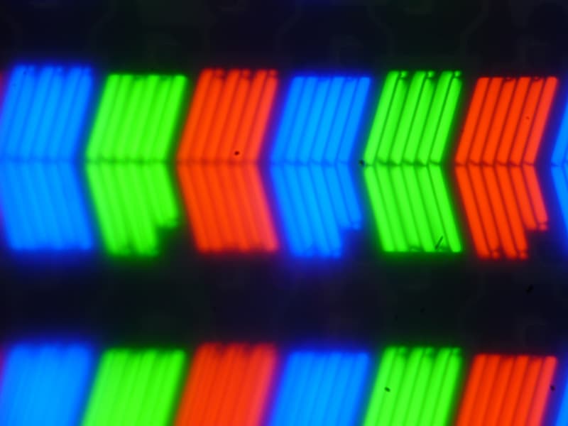 Согласно паспортным характеристикам, в данном телевизоре установлена матрица типа IPS. Микрофотографии не противоречат этому (черные точки — это пыль на матрице фотоаппарата):