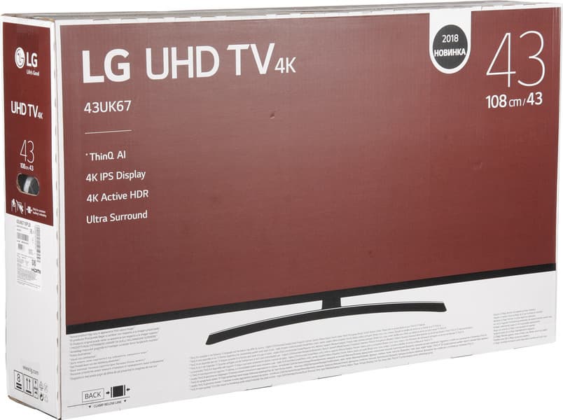 Телевизор LG 43UK6710 не отличается выдающимися характеристиками или каким-то особенным дизайном, но имеет разрешение 4К и поддерживает HDR. Второе в данном случае означает, что телевизор может воспроизводить HDR-видеофайлы и принимать HDR-видеосигнал, при этом вывод изображения будет на уровне качества SDR, так как нет реального 10-битного вывода, цветовой охват практически не превышает sRGB, да и пиковая яркость невелика. К тому же формально, чтобы при такой диагонали от разрешения 4К была практическая польза, телевизор нужно смотреть с расстояния не более 1,7 м. И все же набор мультимедийных функций и оснащенность интерфейсами у данного телевизора почти ничем не хуже, чем у топовых моделей. LG 43UK6710 найдет своего покупателя — того, которому нужен современный небольшой по размеру телевизор известного производителя. Его можно рекомендовать для просмотра телепередач и фильмов, а также для игр, но использование в качестве компьютерного монитора для работы с текстами, изображениями и т. д. в силу ряда причин не рекомендуется. Далее списками: