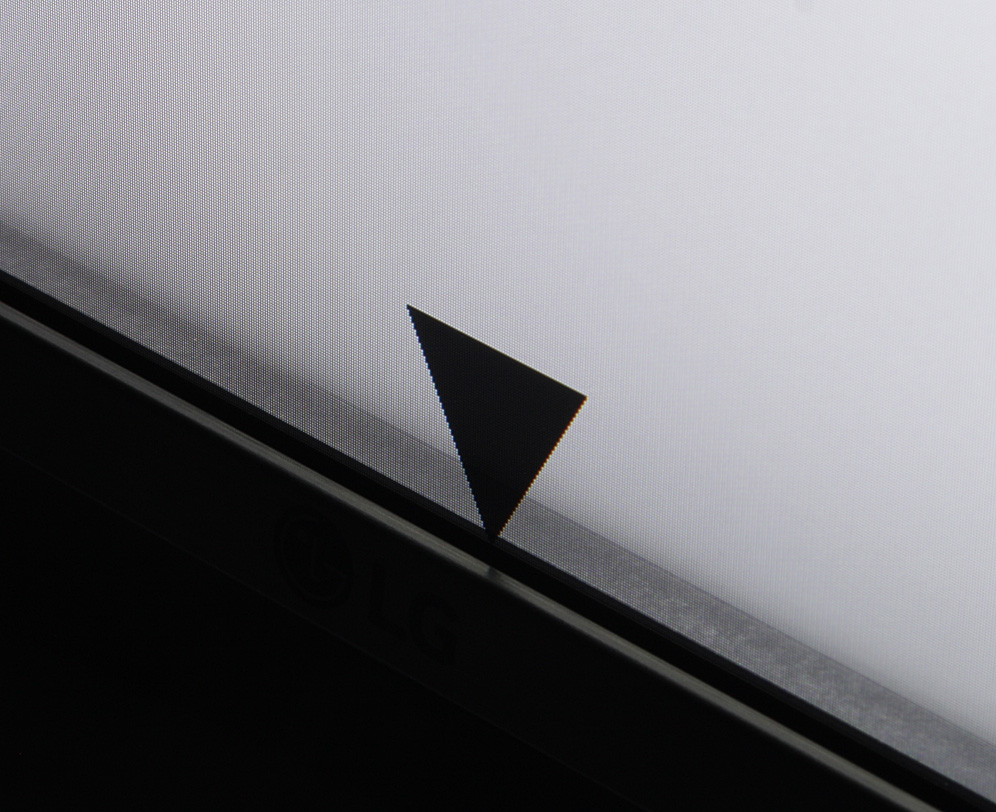 Аппаратные измерения показали, что контрастность типичная для современной матрицы типа IPS, равномерность белого и черного полей средняя, но равномерность контрастности хорошая, значит яркость черного и белого полей по площади меняется примерно симбатно. Визуально на белом поле видно, что яркость снижается к краям и особенно к углам области отображения. Отчасти это можно объяснить особенностью конструкции экрана: между собственно ЖК-матрицей и плоскостью подсветки есть зазор в несколько миллиметров, поэтому вблизи при взгляде под большим углом к экрану видно, что изображение как бы парит в воздухе.