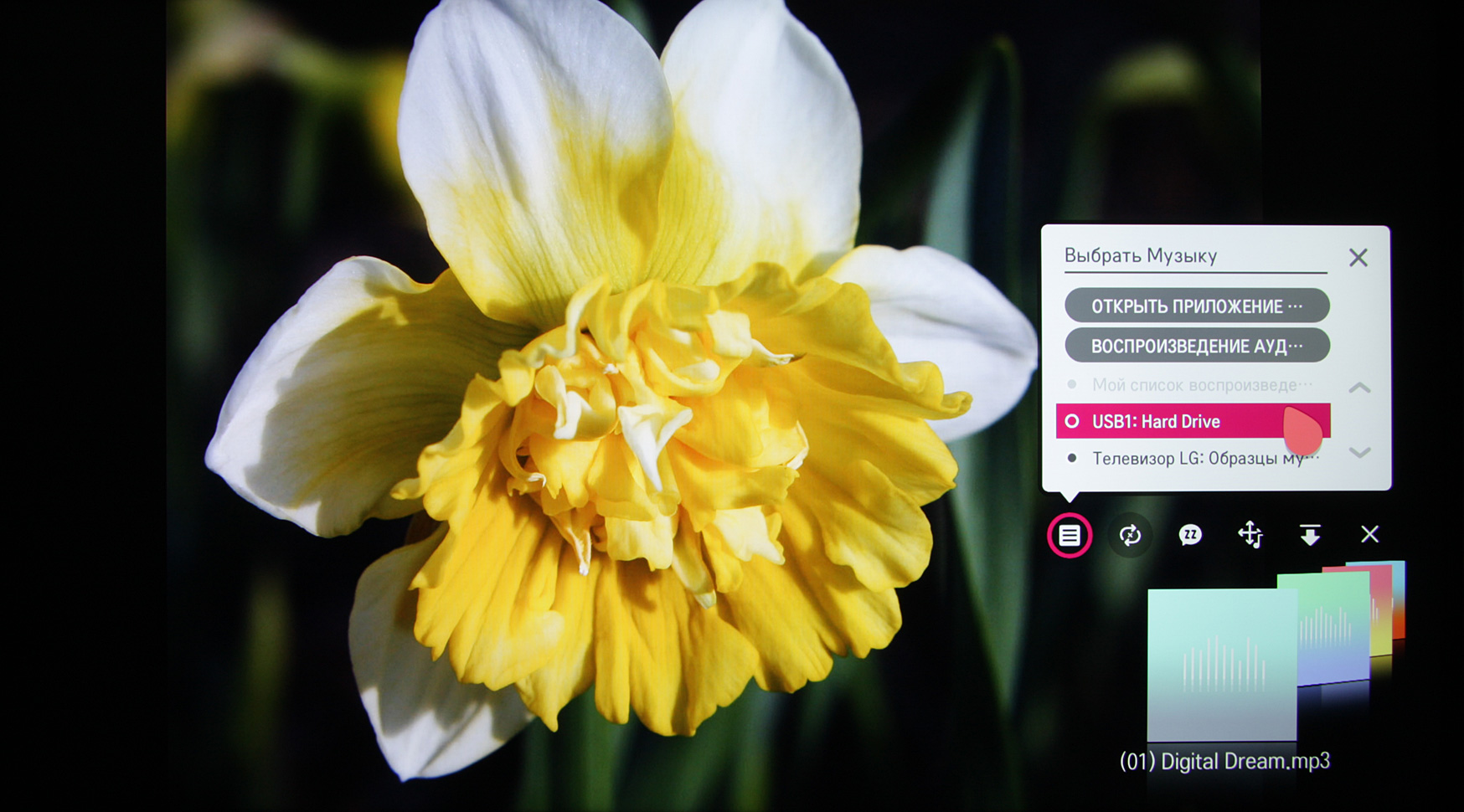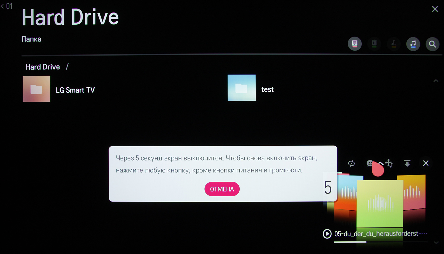 При поверхностном тестировании воспроизведения мультимедийного контента мы ограничились рядом файлов, запускаемых в основном с внешних USB-носителей. Источниками мультимедийного контента также могут быть серверы UPnP (DLNA). Были опробованы жесткие диски, внешние SSD и обычные флешки. Два протестированных жестких диска работали от любого из двух USB-портов, а в режиме ожидания самого ТВ или после некоторого периода отсутствия обращения к ним жесткие диски отключались (это настраивается в меню установок). Отметим, что телевизор поддерживает USB-накопители с файловыми системами FAT32 и NTFS (exFAT не поддерживается), а с кириллическими названиями файлов и папок не было никаких проблем. Плеер телевизора обнаруживает все файлы в папках, даже если на диске очень много файлов (более 100 тысяч), что получается далеко не у каждого «умного» ТВ. Нами подтверждена способность телевизора показывать растровые графические файлы в форматах JPEG, PNG и BMP, в том числе в виде слайд-шоу под фоновую музыку.