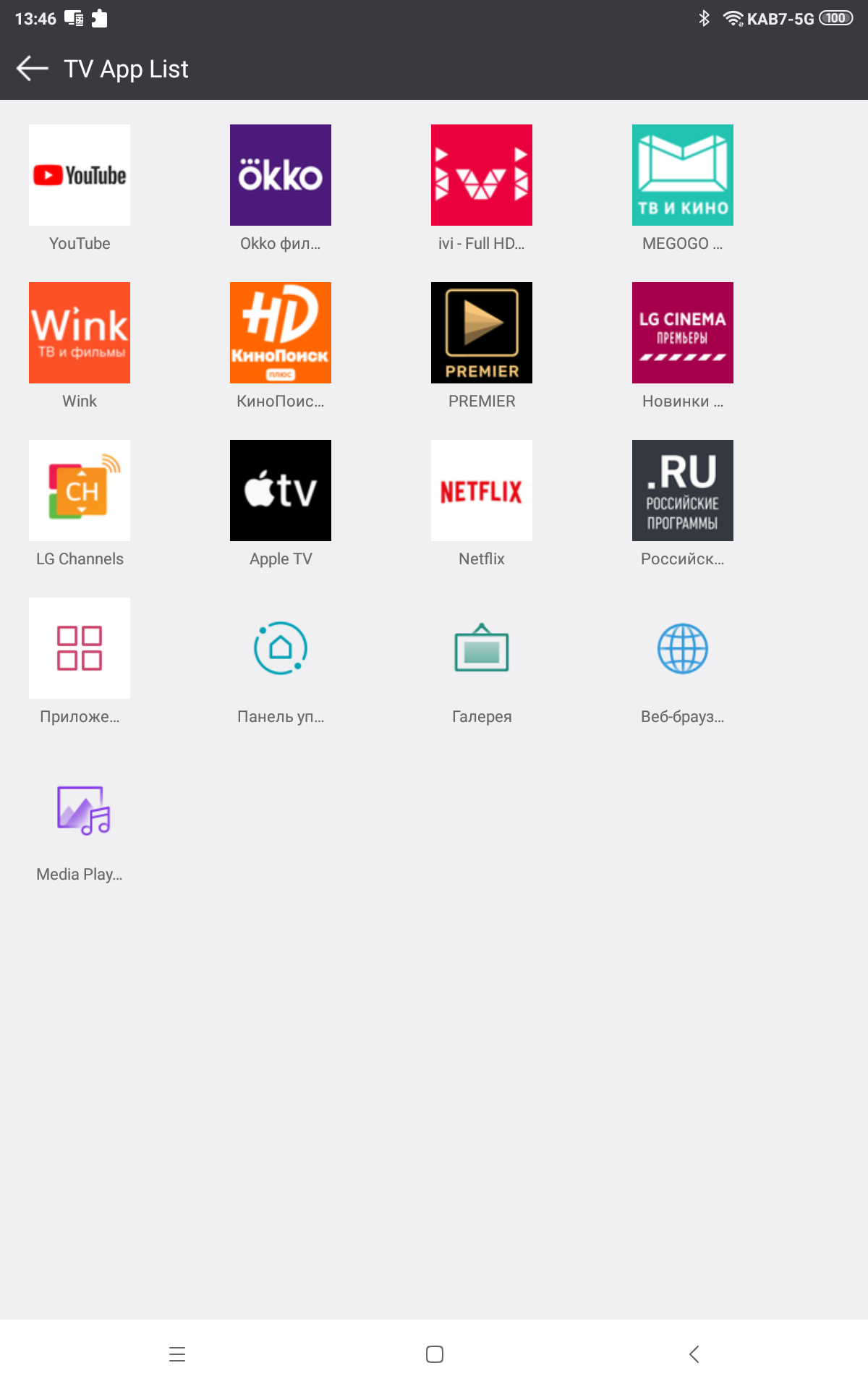 Кроме того, телевизором можно управлять посредством мобильного устройства с помощью фирменного приложения LG TV Plus для Android и iOS (телевизор и мобильное устройство должны находиться в одной сети). Кроме функций управления это приложение позволяет на телевизоре воспроизвести мультимедийный контент, находящийся на мобильном устройстве.