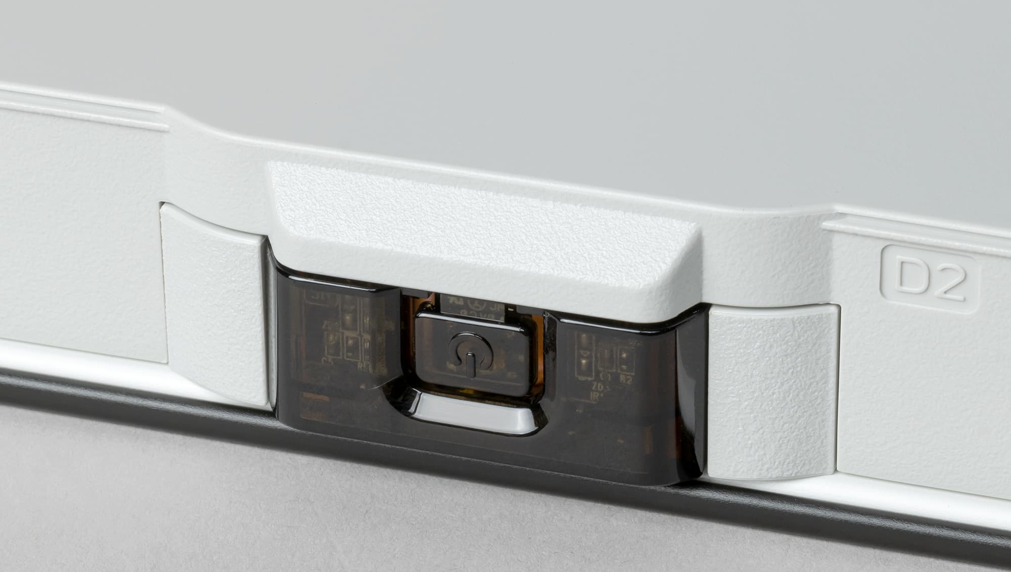 Задняя панель и узкая цельная завальцованная окантовка со скругленными углами изготовлены из стали. Окантовка имеет стойкое черное покрытие. Нерабочие поля экрана узкие. Толщина экрана в тонкой его части составляет всего 3,3 мм.