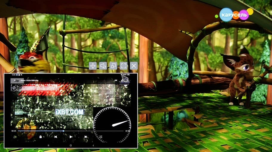 В режиме Cast на телевизор по Wi-Fi можно передавать копию экрана мобильного устройства и звук. В принципе, при наличии современного мобильного устройства и быстрого Wi-Fi смотреть кино таким способом можно — задержка не очень большая, для разрешения Full HD передается до 30 кадр/с, дополнительно привносятся артефакты сжатия, но с этим можно смириться. Трансляция в режиме Cast может вестись в режиме картинка-в-картинке, когда на экране ТВ одновременно выводится изображение экрана мобильного устройства и картинка от текущего источника.