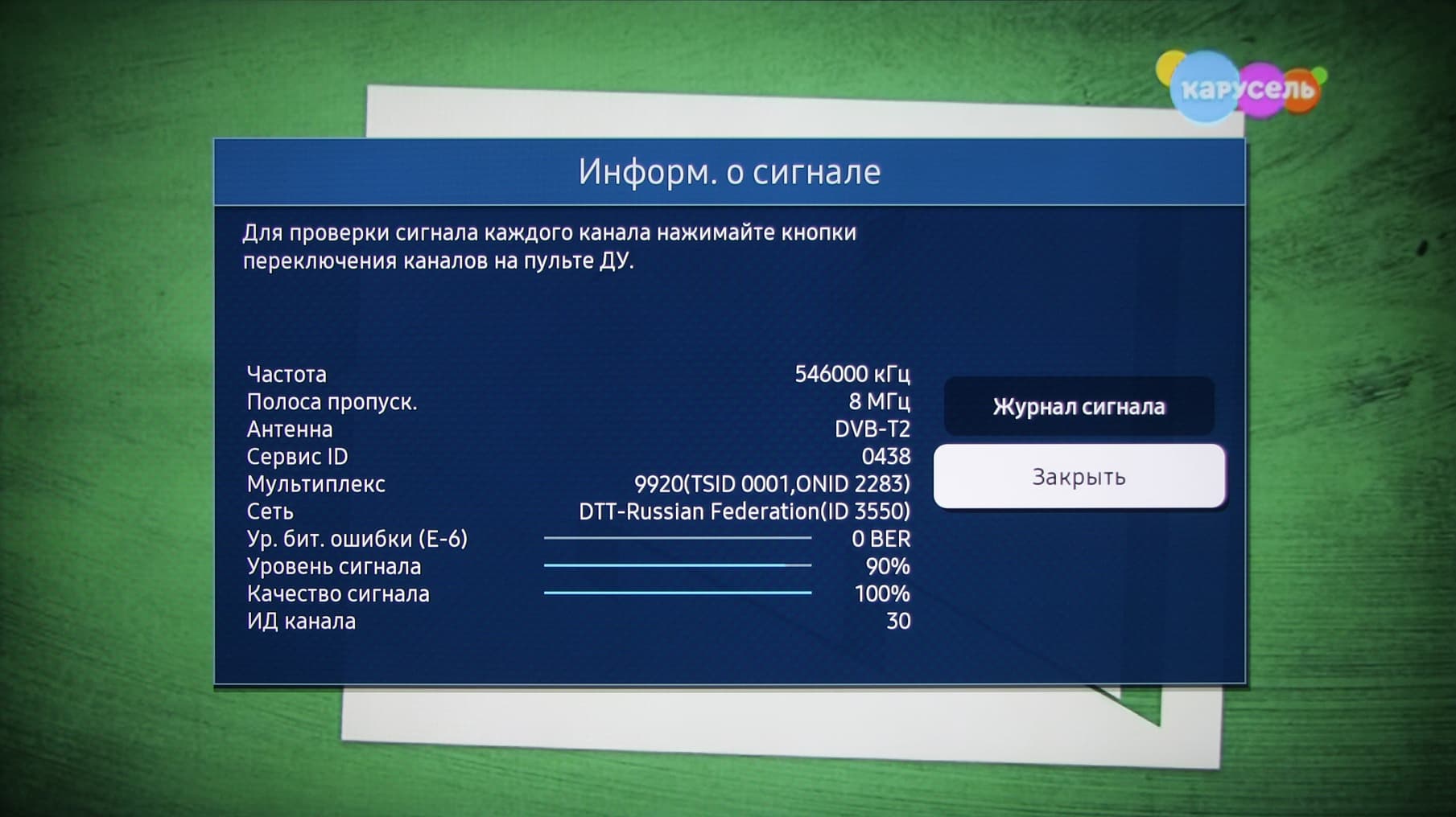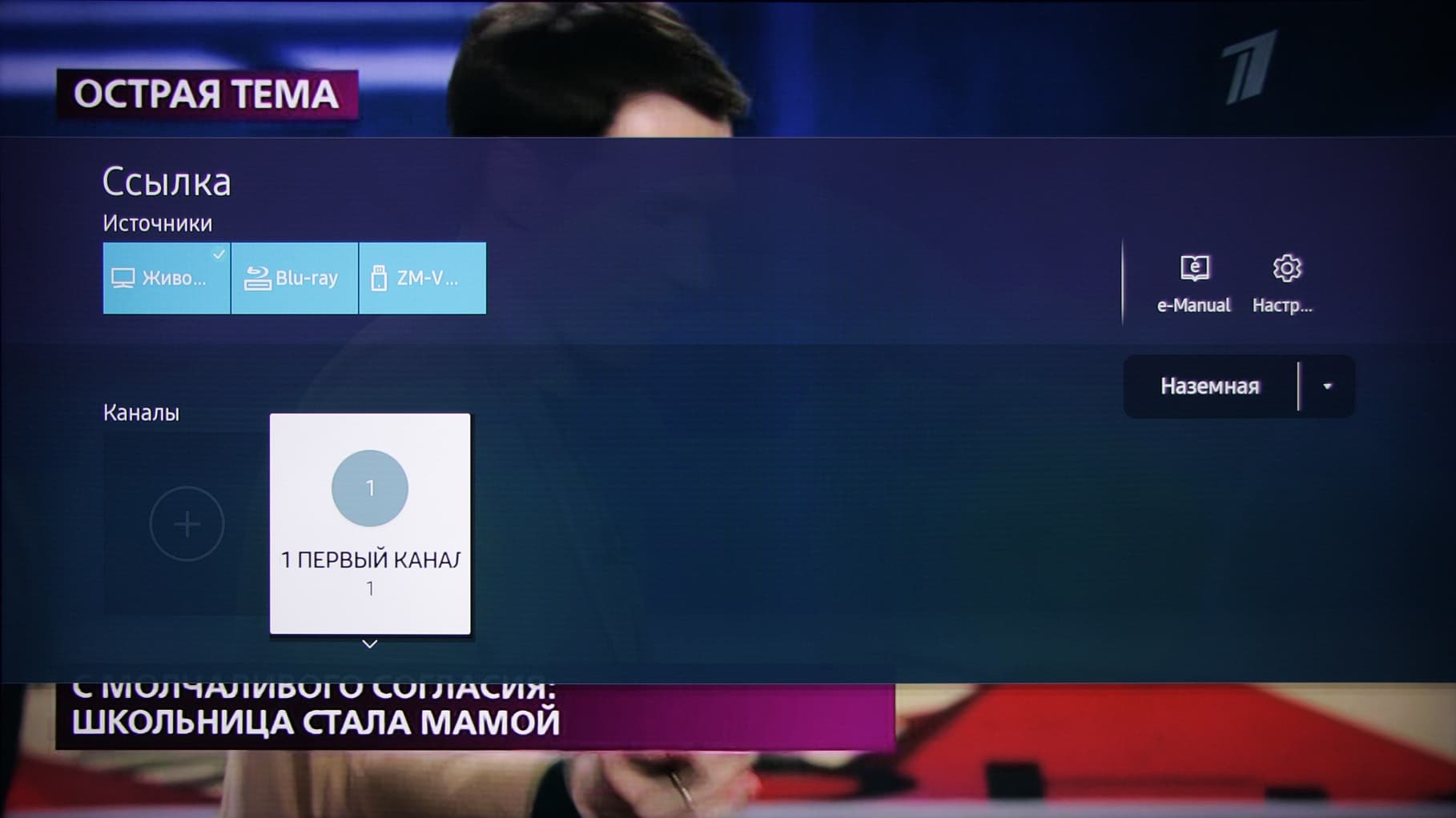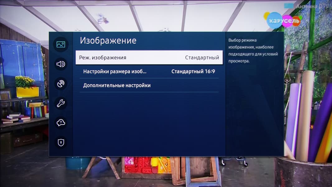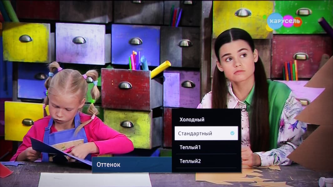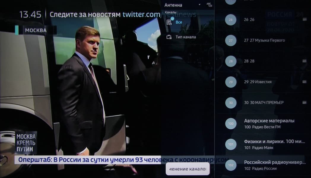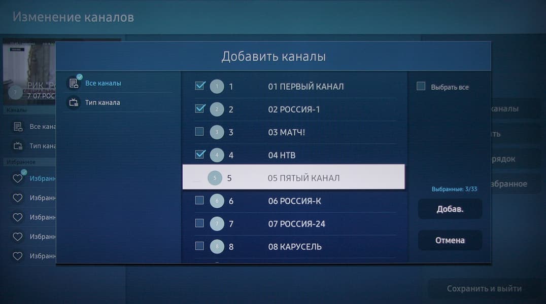 Меню с настройками ТВ занимает большую часть экрана, надписи в нем читаемые.