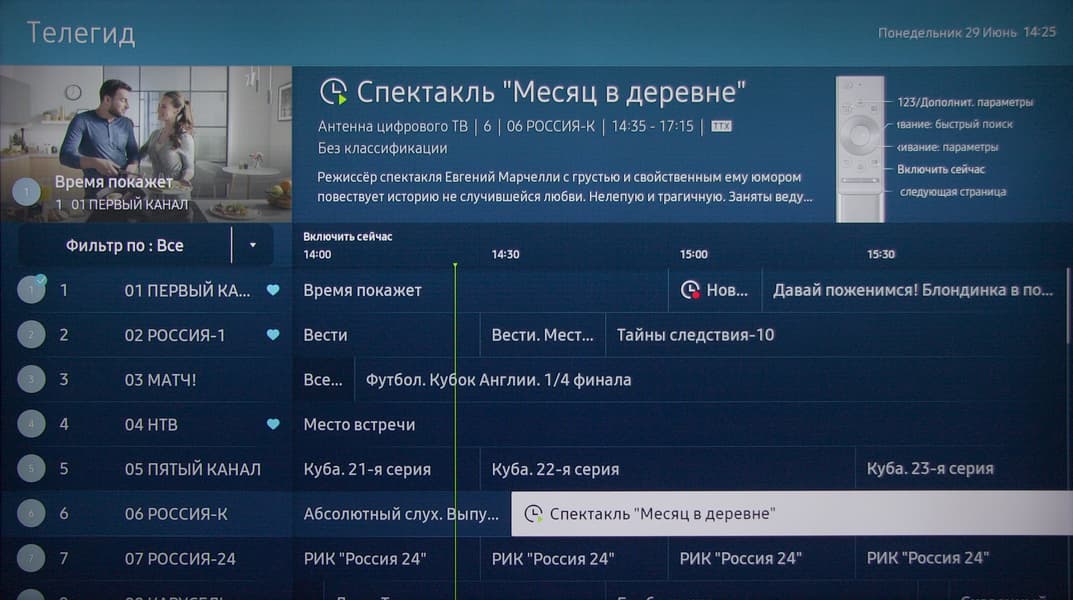 Есть хорошая поддержка электронной программы передач (если она передается) — можно посмотреть, что именно идет на текущем и других каналах, запрограммировать просмотр или запись программы или сериала и т. д.