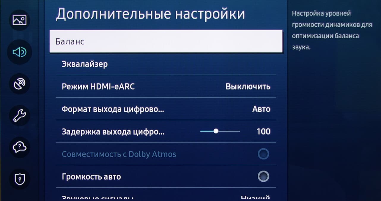 Настроек звука довольно много.