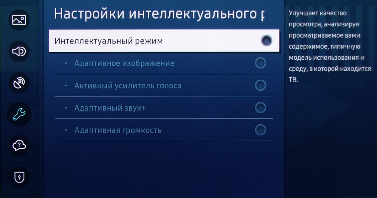 Отметим, что в этом ТВ есть функция, которая для автоматической настройки параметров звука и изображения использует данные, полученные с микрофона и с датчика освещенности.
