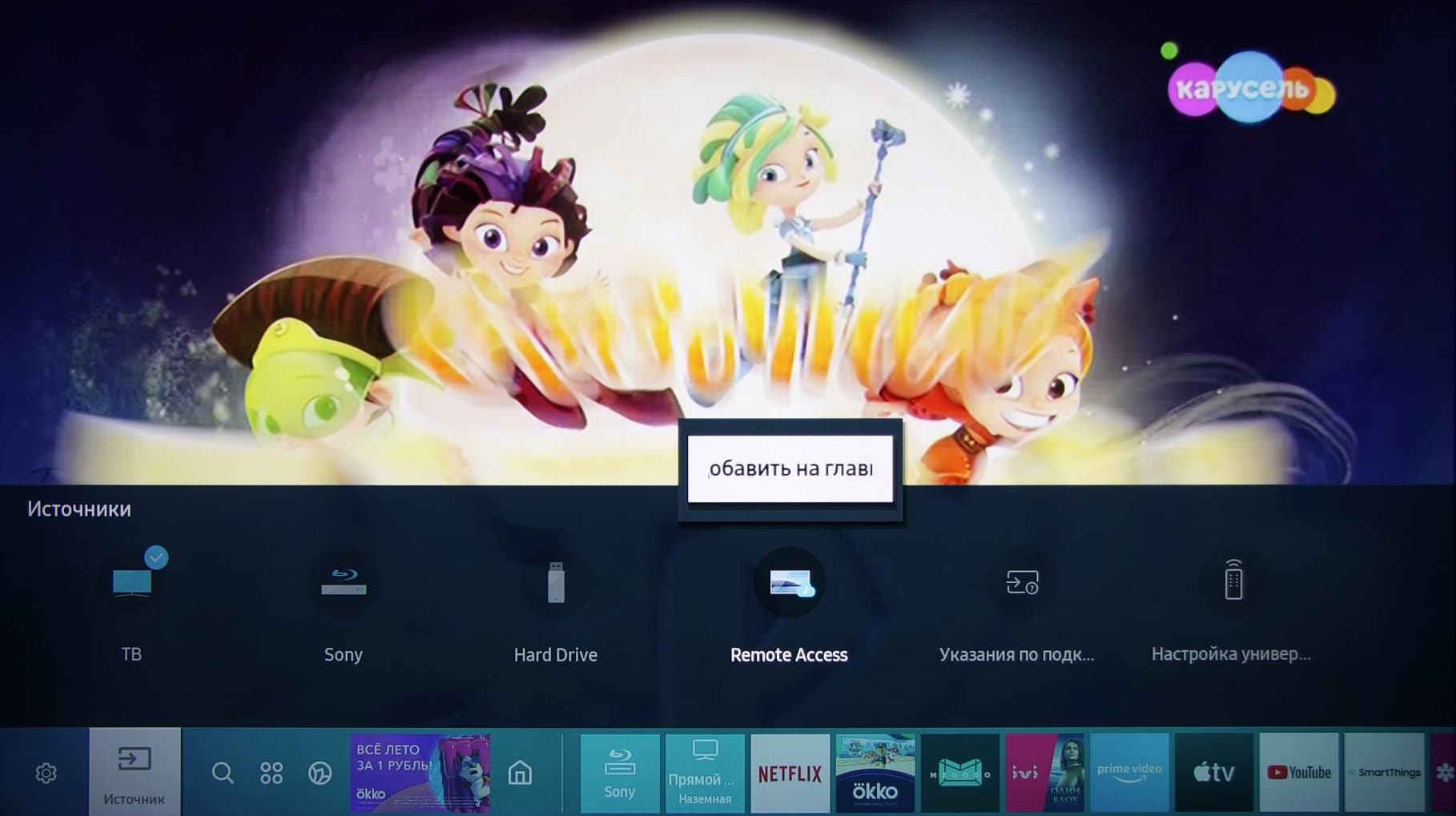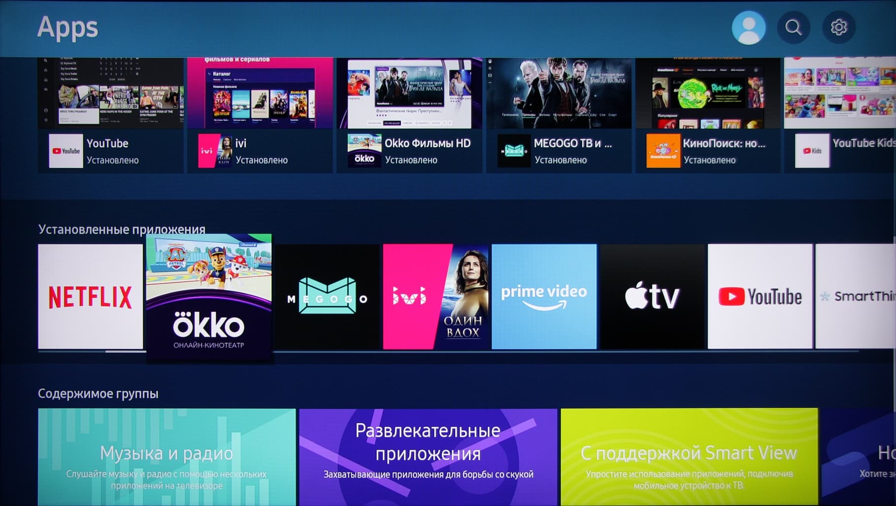 Позиций в этом магазине много, но гораздо меньше, чем в случае ТВ с ОС Android TV. Отметим, что в целом ни к стабильности работы, ни к отзывчивости оболочки у нас никаких претензий не возникло. На команды с пульта ТВ реагирует почти моментально. Несмотря на разнообразную анимацию и звуковые эффекты, навигация по меню быстрая. Правда, нет кнопки быстрого доступа к настройкам, а возврат из меню с настройками к текущему просмотру выполняется через главный экран. Есть быстрый доступ к ряду функций из меню, вызываемого долгим нажатием на кнопку Ambient. В некоторых случаях оно поможет ускорить выполнение ряда действий.