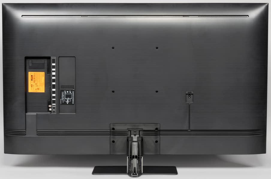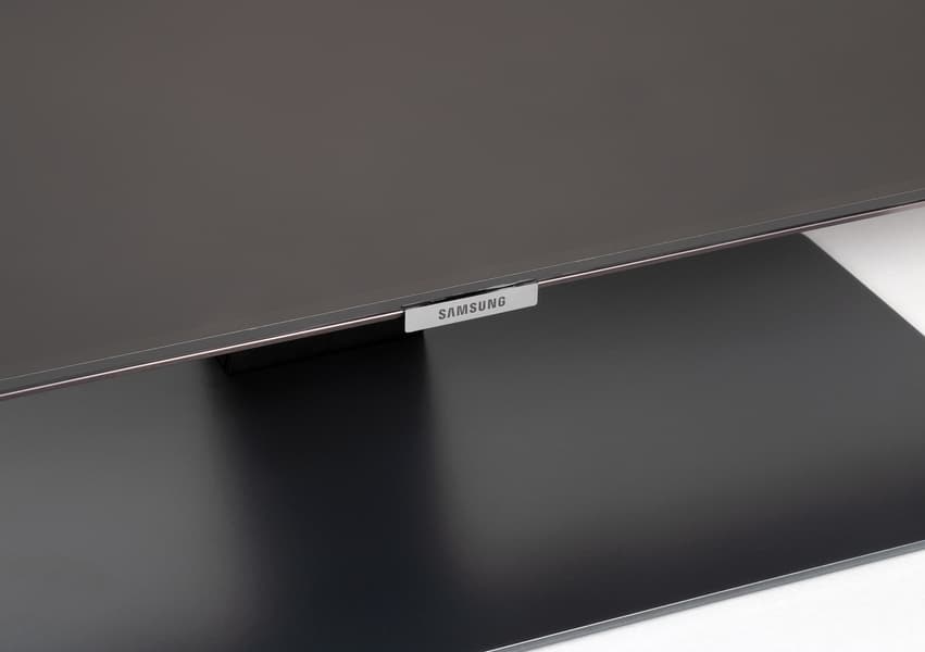 Несмотря на относительно большую диагональ, телевизор оснащен центральной подставкой типа «плавающая пластина», что позволяет устанавливать телевизор на не очень широкие тумбы. Подставка состоит из двух частей — плоского основания и стойки. Основание подставки представляет собой стальную пластину толщиной 4 мм, имеющую стойкое черное полуматовое покрытие с серебристыми вкраплениями (производитель называет это покрытие черным титаном). Снизу на основание наклеены резиновые противоскользящие накладки. К основанию подставки прикручивается стойка, изготовленная из прочного пластика. Стойку прикрывает декоративный кожух из черного пластика с матовой поверхностью.