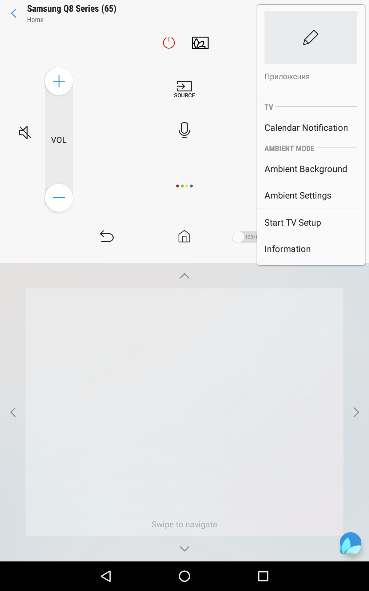 Часть настроек режима Ambient доступны из меню телевизора, также можно воспользоваться программой SmartThings, в частности с ее помощью пользователь может загрузить на телевизор свои собственные изображения и создать фон, гармонирующий с окружением телевизора.