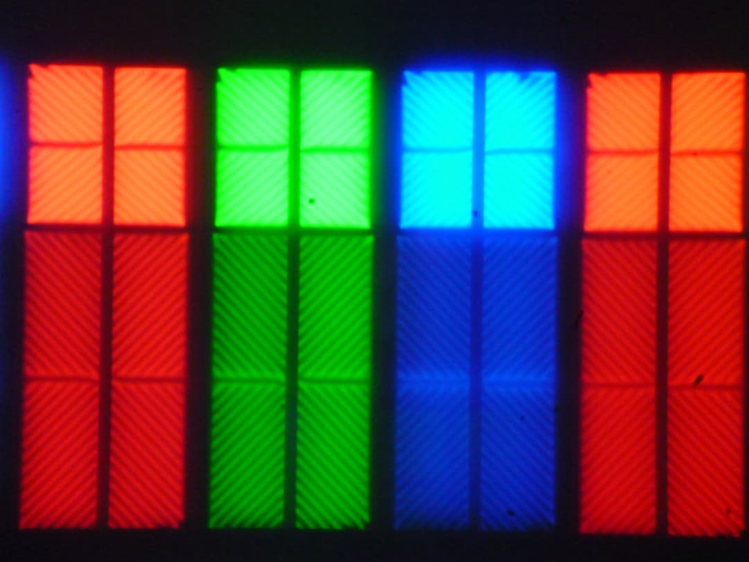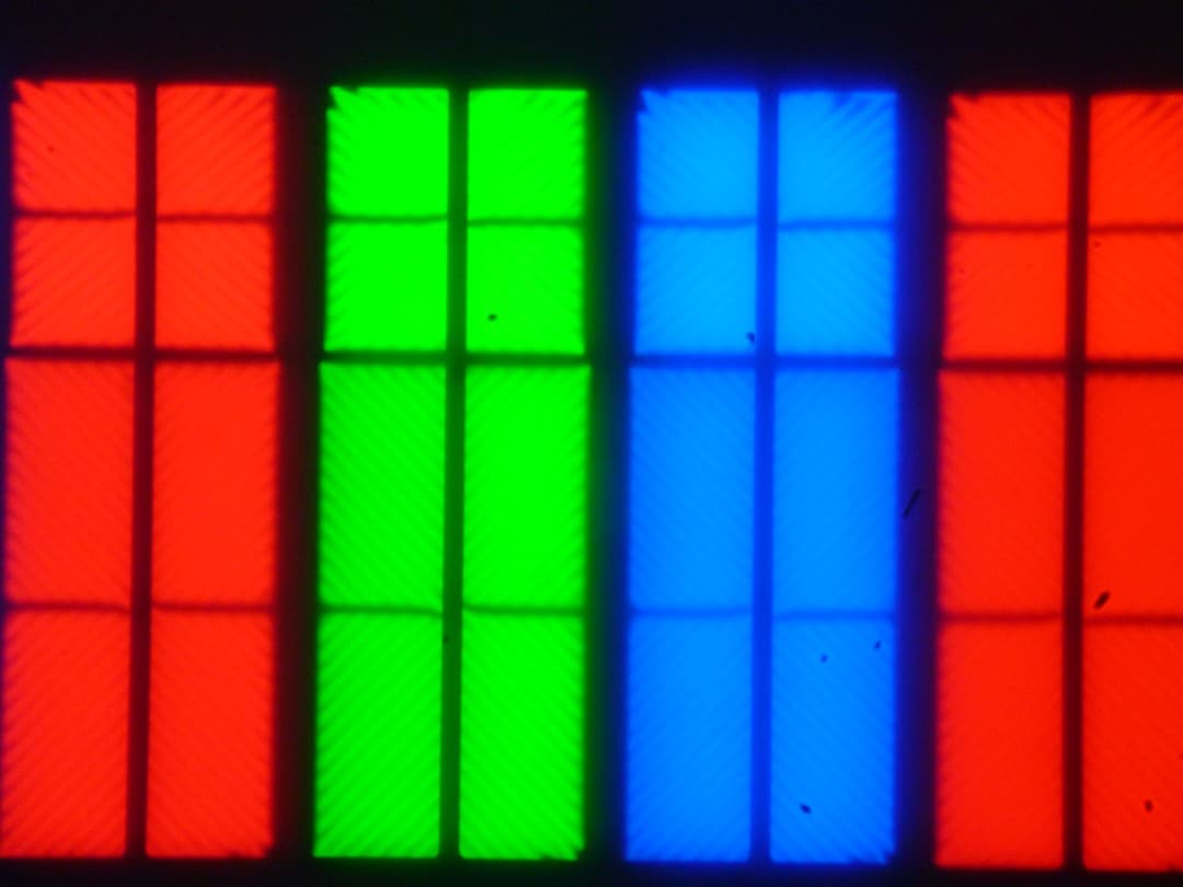 Субпиксели трех цветов (красного, зеленого и синего) поделены на две различающиеся по площади и независимо управляемые области, каждая из которых разделена на четыре участка с доменами в различающейся ориентации. Такое сложное устройство в принципе способно обеспечить широкий динамический диапазон по количеству оттенков, так как с ростом яркости области включаются последовательно, и хорошие углы обзора, чему способствует вариация ориентации ЖК в доменах. Отметим, что никакого «кристаллического» эффекта (микроскопической вариации яркости и оттенка) в данном случае нет.