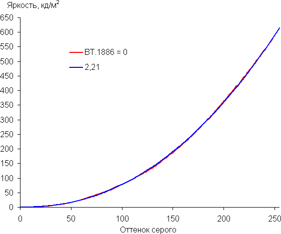 Аппроксимация полученной гамма-кривой дала показатель 2,21, что очень близко к стандартному значению 2,2, при этом реальная гамма-кривая мало отклоняется от аппроксимирующей степенной функции: