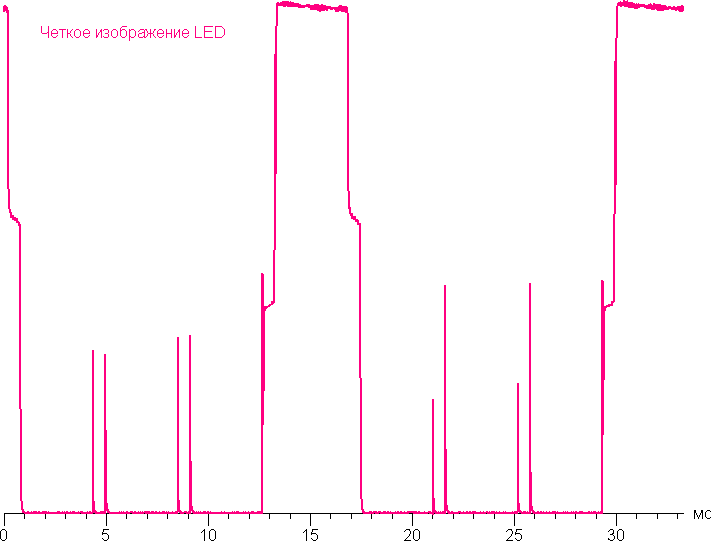 Включение/выключение светодиодов в линейке разнесено во времени, но все равно из-за относительно невысокой частота модуляции мерцание видно на некоторых типах изображений при быстром движении глаз, также оно выявляется в простейшем тесте на стробоскопический эффект. Однако в большинстве случаев мерцание никак не проявляется. Есть функция, повышающая четкость объектов в движении. Достигается это за счет все той же модуляции с основной частотой 60 Гц, яркость изображения при этом существенно снижается, а мерцание уже отчетливо видно, и оно очень утомляет, поэтому практической пользы этот режим не имеет.
