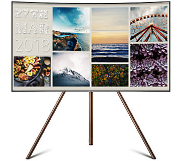 Альтернативный способ установки телевизора — это вариант крепления телевизора на VESA-кронштейне под имеющиеся на задней панели резьбовые отверстия. Из-за изгиба экрана придется использовать входящие в комплект поставки-адаптеры для крепления на стену. Также можно использовать фирменный кронштейн, обеспечивающий крепление вплотную к стене, и подставки в виде мольберта и конуса (изображения с сайта производителя):