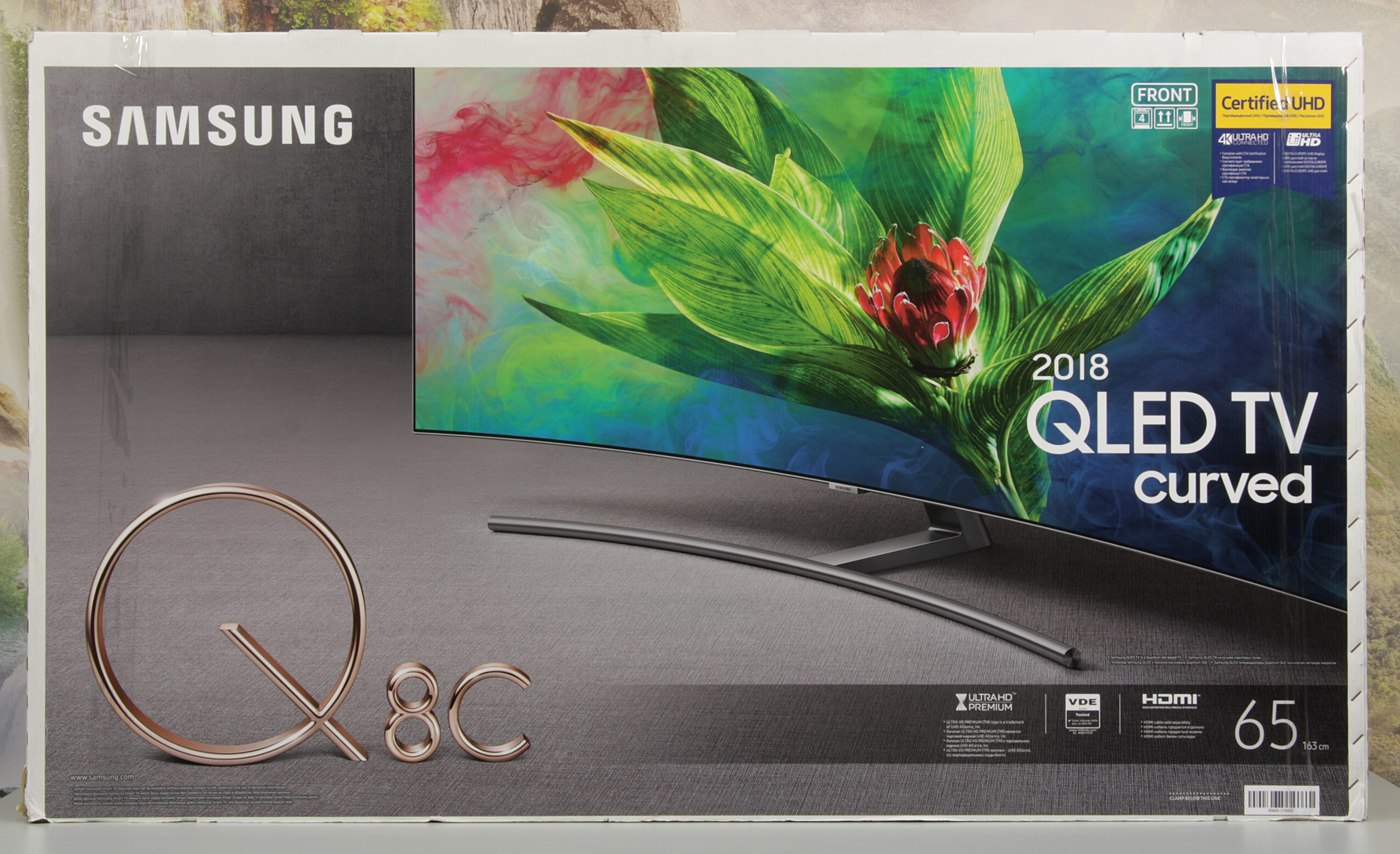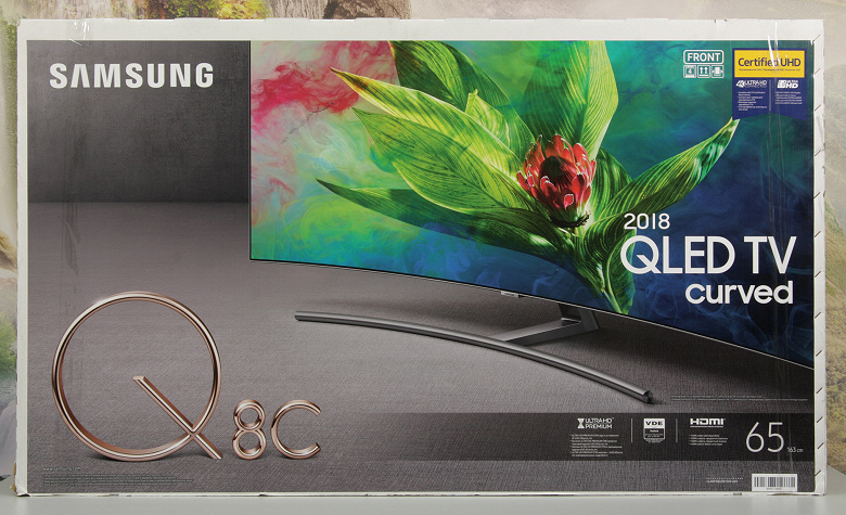 QLED-телевизор Samsung QE65Q8CNAUXRU на настоящий момент является одним из самых продвинутых и совершенных устройств отображения, доступных массовому покупателю. При выводе изображения от внешнего источника телевизор может показывать в истинном разрешении 4К без снижения цветовой четкости в режиме широкого динамического диапазона и с частотой до 60 кадр/с. Встроенный мультимедийный плеер, набор предустановленных и доступных в магазине приложений, сетевые возможности и потенциал расширения функциональности за счет подключения внешних устройств удовлетворят требовательного пользователя. Поддержку режимов с частотой обновления до 120 Гц и технологии AMD FreeSync, а также низкие значения времен отклика и задержки вывода оценят заядлые игроманы. Все это дополнено большим изогнутым безрамочным экраном, элегантной подставкой и аккуратным внешним видом, как спереди, так и сзади, обусловленным, в том числе, малозаметным подключением телевизора к модулю One Connect с помощью всего одного кабеля. Далее списками: