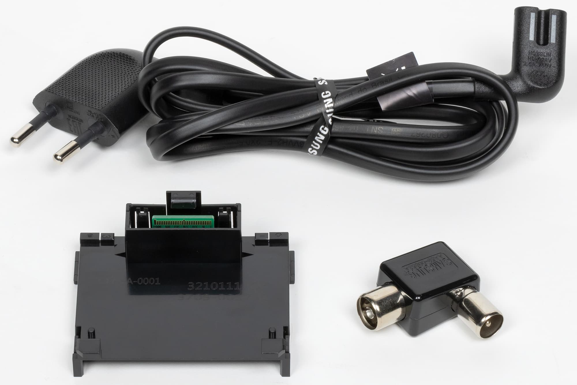 Отметим наличие в комплекте поставки изолирующей угловой вставки для антенного кабеля. Она убережет электронику телевизора от высокого напряжения, которое бывает в антенном кабеле из-за плохо зануленных подключенных устройств. Побочным эффектом от использования этой вставки является некоторое ослабление сигнала.