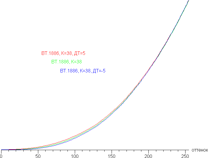 Видно, что уровень черного не меняется, изменяется только скорость роста яркости в тенях.