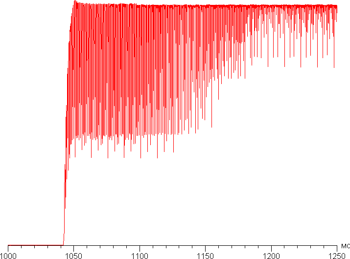 То, как работает динамическая локальная подстройка яркости подсветки явно зависит от многих факторов. График ниже показывает пример того, как меняется яркость (вертикальная ось) при переключении с черного поля на белое: