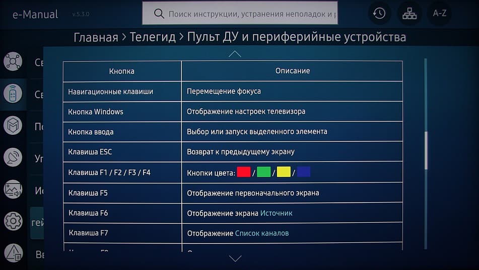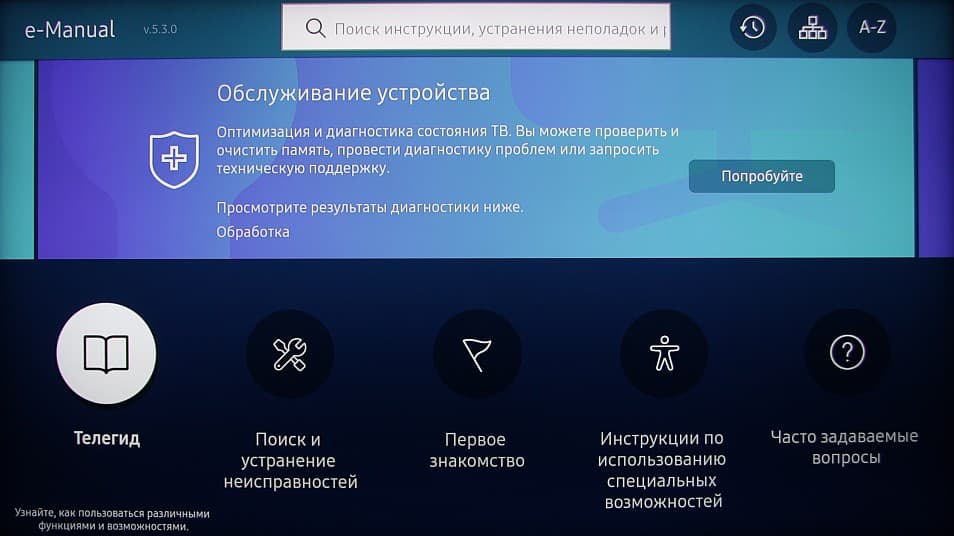 Также с сайта компании можно загрузить e-Manual в виде объемистого файла PDF. Руководство это весьма подробное (262 страницы), хотя местами не хватает информации относительно именно этой модели телевизора.