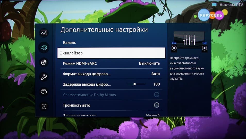 Настроек звука довольно много.
