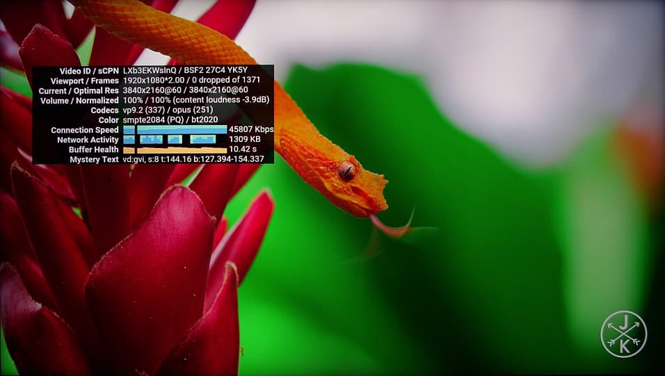 При всём при том, телевизор не воспроизводит из контейнеров AVI и MKV видео в кодеках DivX 3 и MPEG4 ASP, а файлы-контейнеры DivX и OGM в списке файлов вообще не отображаются. Впрочем, если ограничиться современными и более-менее распространенными форматами видеофайлов, то с очень большой вероятностью телевизор их воспроизведет. Поддерживается воспроизведение видеофайлов HDR (HDR10 и HLG; контейнеры WebM, MKV, MP4, TS; кодеки HEVC (H.265), AV1 и VP9; заявленную поддержку HDR10+ проверить возможности не было), а в случае файлов с 10 бит на цвет согласно визуальной оценке градаций оттенков больше, чем у 8-битных файлов. Таким образом, в случае данного ТВ обеспечивается яркость до нескольких сотен кд/м², расширенный цветовой охват и 10 бит на цвет, то есть поддержка HDR реальная. В качестве примера источника HDR-контента можно привести приложение YouTube, в котором удалось посмотреть видео в разрешении 4K с HDR при 60 кадр/с.