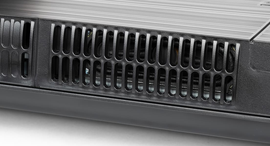 Воздух для охлаждения электроники проходит через решетки на нижнем торце корпуса и в верхней части задней панели.