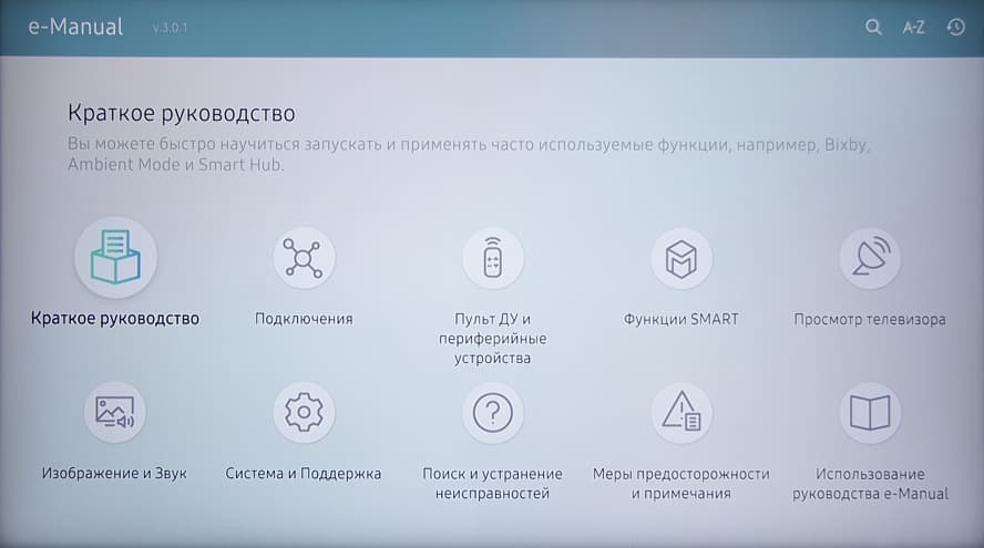 Также с сайта компании можно загрузить e-Manual в виде объемистого файла PDF. Руководство это весьма подробное (197 страниц), хотя местами не хватает информации относительно именно этой модели телевизора. Например, про пульт от этого ТВ вообще ничего не сказано, хорошо хоть функции кнопок пульта кратко описаны в коротком руководстве.